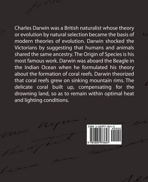 Charles Darwin was a British naturalist whose theory or evolution by natural selection became the basis of modern theories of evolution. Darwin shocked the Victorians by suggesting that humans and animals shared the same ancestry. The Origin of Species is his most famous work. Darwin was aboard the Beagle in the Indian Ocean when he formulated his theory about the formation of coral reefs. Darwin theorized that coral reefs grew on sinking mountain rims. The delicate coral built up, compensating for the drowning land, so as to remain within optimal heat and lighting conditions.