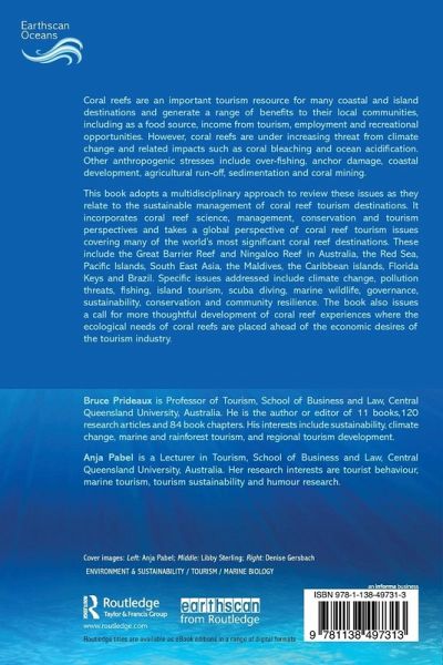 Bruce Prideaux is Professor of Tourism, School of Business and Law, Central Queensland University, Australia. He is the author or editor of 11 books, 120 research articles and 84 book chapters. His interests include sustainability, climate change, marine and rainforest tourism, and regional tourism development. Anja Pabel is a Lecturer in Tourism, School of Business and Law, Central Queensland University, Australia. Her research interests are tourist behaviour, marine tourism, tourism sustainability and humour research.