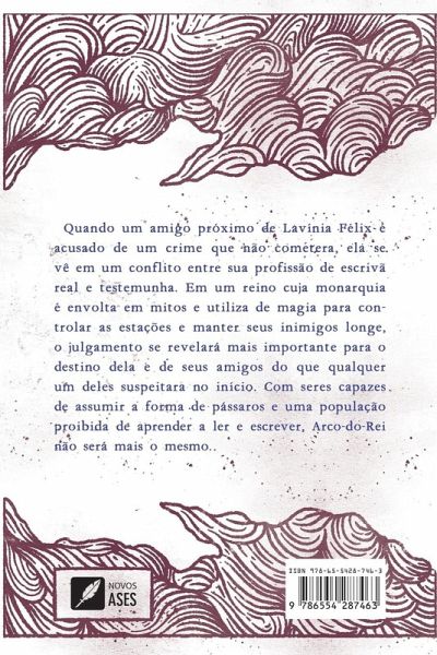 Quando um amigo próximo de Lavínia Félix é acusado de um crime que não cometera, ela se vê em um conflito entre sua profissão de escrivã real e testemunha. Em um reino cuja monarquia é envolta em mitos e utiliza de magia para controlar as estações e manter seus inimigos longe, o julgamento se revelará mais importante para o destino dela e de seus amigos do que qualquer um deles suspeitara no início. Com seres capazes de assumir a forma de pássaros e uma população proibida de aprender a ler e escrever, Arco-do-Rei não será mais o mesmo.