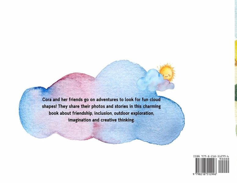 This is a children's book that encourages outdoor play, friendship and creative thinking. Cora and her friends go on adventures to look for fun cloud shapes! They share their photos and stories in this charming book about friendship, inclusion, outdoor exploration, imagination and creative thinking.