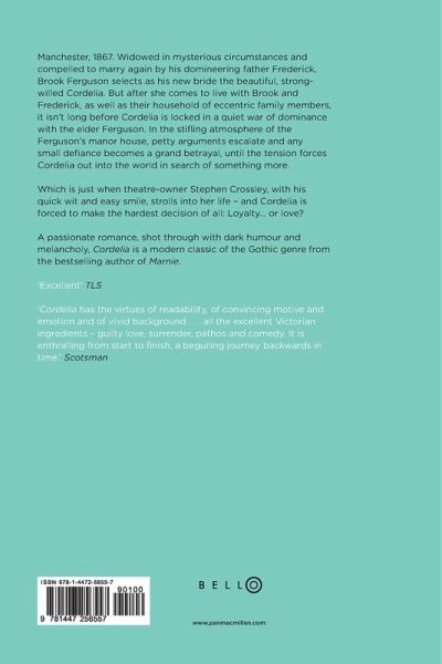 Manchester, 1867. Widowed in mysterious circumstances and compelled to marry again by his domineering father Frederick, Brook Ferguson selects as his new bride the beautiful, strong-willed Cordelia. But after she comes to live with Brook and Frederick, as well as their household of eccentric family members, it isn't long before Cordelia is locked in a quiet war of dominance with the elder Ferguson. In the stifling atmosphere of the Ferguson's manor house, petty arguments escalate and any small defiance becomes a grand betrayal, until the tension forces Cordelia out into the world in search of something more. Which is just when theatre-owner Stephen Crossley, with his quick wit and easy smile, strolls into her life - and Cordelia is forced to make the hardest decision of all: Loyalty... or love? A passionate romance, shot through with dark humour and melancholy, Cordelia is a modern classic of the Gothic genre from the bestselling author of Marnie. 'Excellent' TLS 'Cordelia has the virtues of readability, of convincing motive and emotion and of vivid background . . . all the excellent Victorian ingredients - guilty love, surrender, pathos and comedy. It is enthralling from start to finish, a beguiling journey backwards in time.' Scotsman