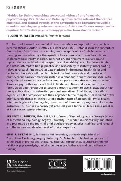 This book addresses the essential clinical competencies required to conduct brief dynamic therapy. Authors Jeffrey L. Binder and Ephi J. Betan discuss the conceptual foundation of their treatment model, and the application of this framework in forming and maintaining a therapeutic alliance, assessment, case formulation, implementing a treatment plan, termination, and treatment evaluation.