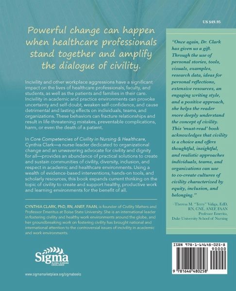 Incivility and other workplace aggressions have a significant impact on the lives of healthcare professionals, faculty, and students, as well as the patients and families in their care. Incivility in academic and practice environments can provoke uncertainty and self-doubt, weaken self-confidence, and cause detrimental and lasting effects on individuals, teams, and organizations. These behaviors can fracture relationships and result in life-threatening mistakes, preventable complications, harm, or even the death of a patient. In Core Competencies of Civility in Nursing & Healthcare, Cynthia Clark-a nurse-leader dedicated to organizational change and an unwavering advocate for civility and dignity for all-provides an abundance of practical solutions to create and sustain communities of civility, diversity, inclusion, and respect in academic and healthcare environments. Using a wealth of evidence-based interventions, hands-on tools, and scholarly resources, this book expands current thinking on the topic of civility to create and support healthy, productive work and learning environments for the benefit of all.