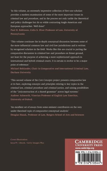 1. Introductory Remarks Kai Ambos, Antony Duff, Julian Roberts and Thomas Weigend; Part I. Criminal Law: 2. Structures Within Criminal Legal Reasoning Matt Dyson and Frank Meyer; 3. Causation and Responsibility for Outcomes Alec Walen and Bettina Weißer; 4. Imputation of Responsibility and Intoxicated Offending Neha Jain, Sabine Gless and Arlie Loughnan; 5. Crimes of Endangerment Antony Duff and Tatjana Hörnle; Part II. Criminal Procedure: 6. Prosecutorial Discretion Shannon Fyfe and Alexander Heinze; 7. Arrest and Coercion Richard Vogler and Dominik Brodowski; 8. Witness Evidence in Pre-Trial and Trial Procedure John Jackson and Thomas Weigend; 9. Cooperation Agreements in Germany and the USA Kai Ambos and Stephen Thaman; Part III. Criminal Justice: 10. The Implementation of Sentences Nicola Padfield and Katrin Höffler; 11. Collateral Consequences of Criminal Conviction in the United States and Germany Alessandro Corda and Johannes Kaspar.