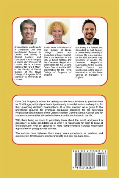 Core Oral Surgery is written for undergraduate dental students to prepare them for Oral Surgery clinical practice but particularly to reach the standard required for their qualifying dentistry examinations. It is also intended as a guide to the knowledge required for overseas graduates preparing for the Overseas Registration Examination of the United Kingdom General Dental Council and for students at universities abroad who have a similar curriculum to the UK. With there being so much to potentially learn about the mouth and jaws it is necessary to guide candidates as to what it is reasonable for them to know at undergraduate level as opposed to more comprehensive surgical knowledge appropriate for post graduate trainees. The authors have between them many years of experience as teachers and examiners in Oral Surgery at undergraduate and post graduate level.