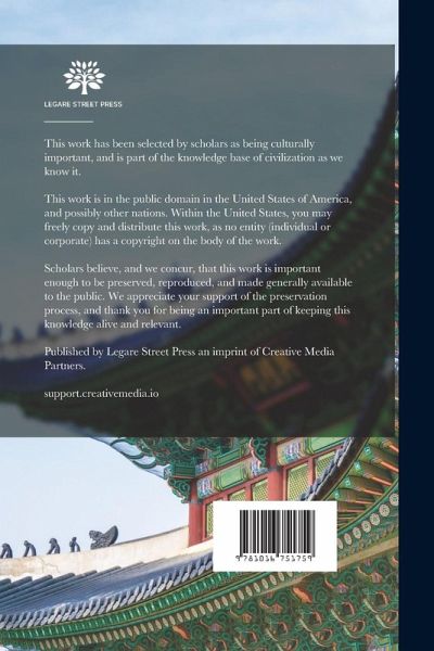 This work has been selected by scholars as being culturally important, and is part of the knowledge base of civilization as we know it. This work is in the "public domain in the United States of America, and possibly other nations. Within the United States, you may freely copy and distribute this work, as no entity (individual or corporate) has a copyright on the body of the work. Scholars believe, and we concur, that this work is important enough to be preserved, reproduced, and made generally available to the public. We appreciate your support of the preservation process, and thank you for…mehr