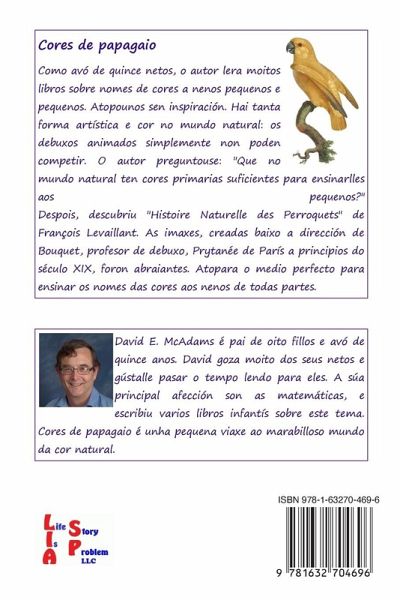 Como avó de quince netos, o autor lera moitos libros sobre nomes de cores a nenos pequenos e pequenos. Atopounos sen inspiración. Hai tanta forma artística e cor no mundo natural: os debuxos animados simplemente non poden competir. O autor preguntouse: "Que no mundo natural ten cores primarias suficientes para ensinarlles aos pequenos?" Despois, descubriu "Histoire Naturelle des Perroquets" de François Levaillant. As imaxes, creadas baixo a dirección de Bouquet, profesor de debuxo, Prytanée de París a principios do século XIX, foron abraiantes. Atopara o medio perfecto para ensinar os nomes das cores aos nenos de todas partes.…mehr