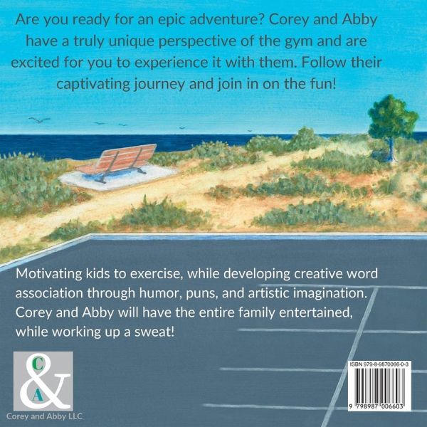It's never too early to establish good fitness habits! Are you ready for an epic adventure? Corey and Abby have a truly unique perspective of the gym and are excited for you to experience it with them. Follow their captivating journey and join in on the fun! Motivating kids to exercise, while developing creative word association through humor, puns, and artistic imagination. Corey and Abby will have the entire family entertained, while working up a sweat! Keep Moving, Keep Laughing. -Corey and Abby