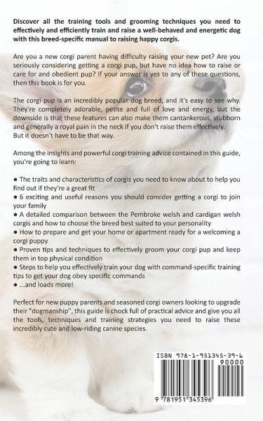 Discover all the training tools and grooming techniques you need to effectively and efficiently train and raise a well-behaved and energetic dog with this breed-specific manual to raising happy corgis Are you a new corgi parent having difficulty raising your new pet? Are you seriously considering getting a corgi pup, but have no idea how to raise or care for and obedient pup? If your answer is yes to any of these questions, then this book is for you. The corgi pup is an incredibly popular dog breed, and it's easy to see why. They're completely adorable, petite and full of love and energy, but the downside is that these features can also make them cantankerous, stubborn and generally a royal pain in the neck if you don't raise them effectively. But it doesn't have to be that way. Among the insights and powerful corgi training advice contained in this guide, you're going to learn: * The traits and characteristics of corgis you need to know about to help you find out if they're a great fit * 6 exciting and useful reasons you should consider getting a corgi to join your family * A detailed comparison between the Pembroke welsh and cardigan welsh corgis and how to choose the breed best suited to your personality * How to prepare and get your home or apartment ready for a welcoming a corgi puppy * Proven tips and techniques to effectively groom your corgi pup and keep them in top physical condition * Steps to help you effectively train your dog with command-specific training tips to get your dog obey specific commands * ...and loads more! Perfect for new puppy parents and seasoned corgi owners looking to upgrade their "dogmanship", this guide is chock full of practical advice and give you all the tools, techniques and training strategies you need to raise these incredibly cute and low-riding canine species. Scroll to the top of the page and click the "Buy Now" button to begin your pleasurable journey as an adorable corgi parent today!
