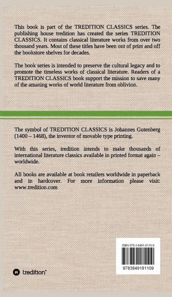 This book (hardcover) is part of the TREDITION CLASSICS. It contains classical literature works from over two thousand years. Most of these titles have been out of print and off the bookstore shelves for decades. The book series is intended to preserve the cultural legacy and to promote the timeless works of classical literature. Readers of a TREDITION CLASSICS book support the mission to save many of the amazing works of world literature from oblivion. With this series, tredition intends to make thousands of international literature classics available in printed format again worldwide.