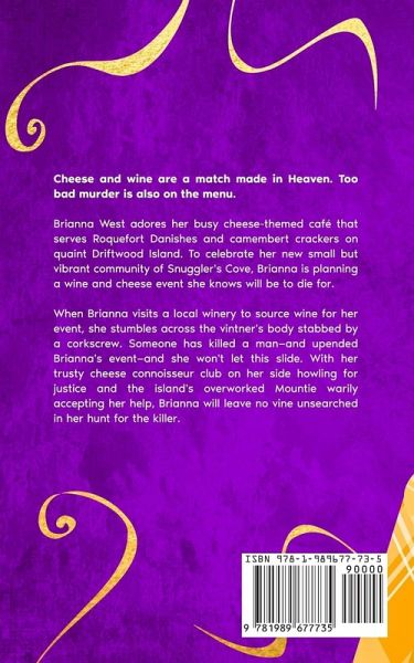 Cheese and wine are a match made in Heaven. Too bad murder is also on the menu. Brianna West adores her busy cheese-themed café that serves Roquefort Danishes and camembert crackers on quaint Driftwood Island. To celebrate her new small but vibrant community of Snuggler's Cove, Brianna is planning a wine and cheese event she knows will be to die for. When Brianna visits a local winery to source wine for her event, she stumbles across the vintner's body stabbed by a corkscrew. Someone has killed a man--and upended Brianna's event--and she won't let this slide. With her trusty cheese connoisseur club on her side howling for justice and the island's overworked Mountie warily accepting her help, Brianna will leave no vine unsearched in her hunt for the killer.