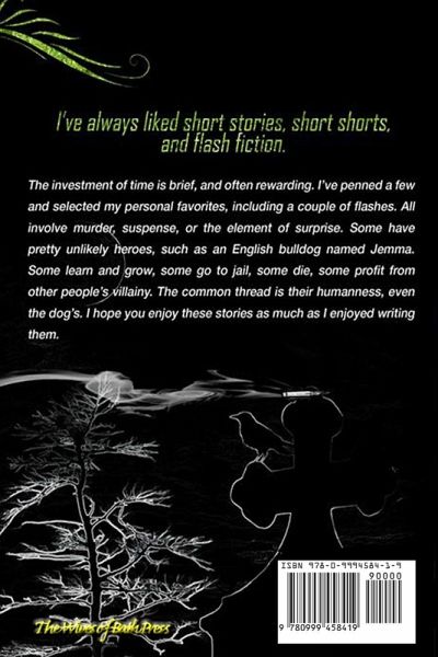 I've penned a few and selected my personal favorites, including a couple of flashes. All involve murder, suspense or the element of surprise. Some have pretty unlikely heroes, such as an English bulldog named Jemma. Some learn and grow, some go to jail, some die, some profit from other people's villiany. The comon thread is their humanness, even the dog's. I hope you enjoy these stories as much as I enjoyed writing them.