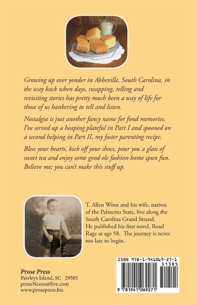 Growing up over yonder in Abbeville, South Carolina, in the way back when days, swapping, telling and revisiting stories has pretty much been a way of life for those of us hankering to tell and listen. Nostalgia is just another fancy name for fond memories. I've served up a heaping plateful in Part I and spooned on a second helping in Part II, my foster parenting recipe. Bless your hearts, kick off your shoes, pour you a glass of sweet tea and enjoy some good ole fashion home spun fun. Believe me; you can't make this stuff up.