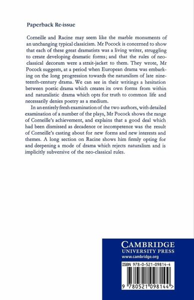 This study highlights that both Corneille and Racine were living writers, struggling to create developing forms within the strait-jacket of neo-classical decorum.