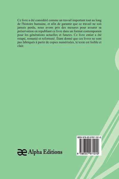 Corneille expliqué aux enfants, un livre classique et rare qui a été considéré comme essentiel tout au long de l'histoire de l'humanité, pour que cet ouvrage ne soit jamais oublié, nous chez Alpha Editions avons fait des efforts pour sa préservation en rééditant ce livre dans un format moderne pour les générations présentes et futures. Tout ce livre a été reformaté, retapé et conçu. Ces livres ne sont pas constitués de copies numérisées de leur ¿uvre originale et le texte est donc clair et lisible.