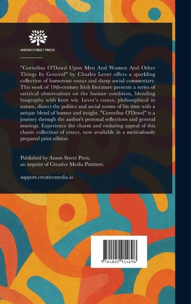 "Cornelius O'Dowd Upon Men And Women And Other Things In General" by Charles Lever offers a sparkling collection of humorous essays and sharp social commentary. This work of 19th-century Irish literature presents a series of satirical observations on the human condition, blending biography with keen wit. Lever's essays, philosophical in nature, dissect the politics and social norms of his time with a unique blend of humor and insight. "Cornelius O'Dowd" is a journey through the author's personal reflections and general musings. Experience the charm and enduring appeal of this classic collection of essays, now available in a meticulously prepared print edition. This work has been selected by scholars as being culturally important, and is part of the knowledge base of civilization as we know it. This work is in the public domain in the United States of America, and possibly other nations. Within the United States, you may freely copy and distribute this work, as no entity (individual or corporate) has a copyright on the body of the work. Scholars believe, and we concur, that this work is important enough to be preserved, reproduced, and made generally available to the public. We appreciate your support of the preservation process, and thank you for being an important part of keeping this knowledge alive and relevant.