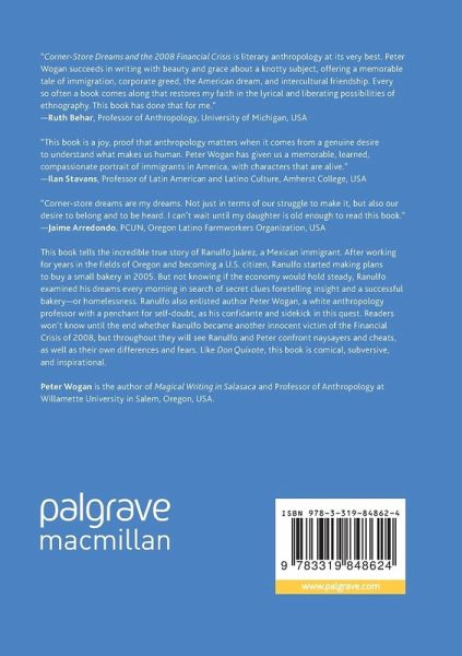 This book tells the incredible true story of Ranulfo Juárez, a Mexican immigrant. After working for years in the fields of Oregon and becoming a U.S. citizen, Ranulfo started making plans to buy a small bakery in 2005. But not knowing if the economy would hold steady, Ranulfo examined his dreams every morning in search of secret clues foretelling insight and a successful bakery-or homelessness. Ranulfo also enlisted author Peter Wogan, a white anthropology professor with a penchant for self-doubt, as his confidante and sidekick in this quest. Readers won't know until the end whether Ranulfo became another innocent victim of the Financial Crisis of 2008, but, throughout, they will see Ranulfo and Peter confront naysayers and cheats, as well as their own differences and fears. Like Don Quixote, this book is comical, subversive, and inspirational.
