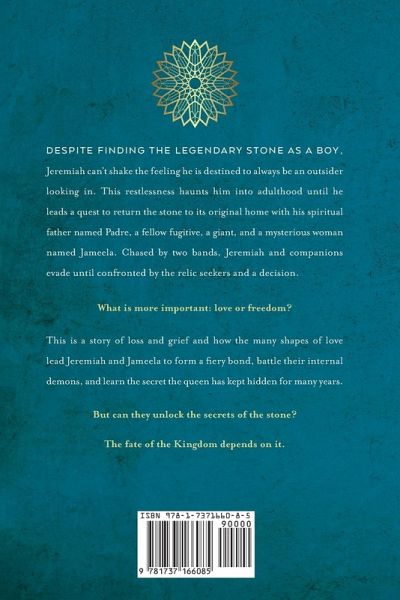 DESPITE FINDING THE LEGENDARY STONE AS A BOY, Jeremiah can't shake the feeling he is destined to always be an outsider looking in. This restlessness haunts him into adulthood until he leads a quest to return the stone to its original home with his spiritual father named Padre, a fellow fugitive, a giant, and a mysterious woman named Jameela. Chased by two bands, Jeremiah and companions evade until confronted by the relic seekers and a decision. What is more important: love or freedom? This is a story of loss and grief and how the many shapes of love lead Jeremiah and Jameela to form a fiery bond, battle their internal demons, and learn the secret the queen has kept hidden for many years. But can they unlock the secrets of the stone? The fate of the Kingdom depends on it.