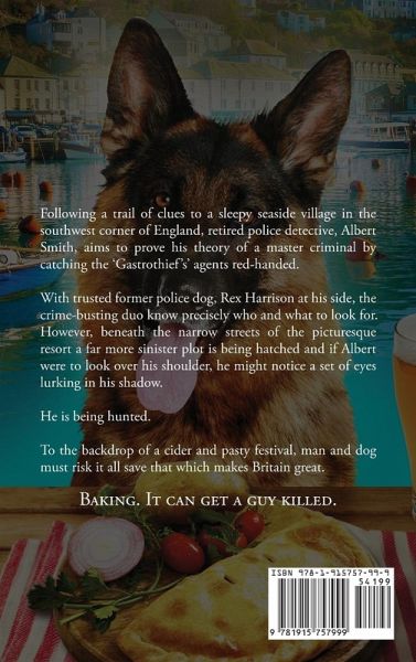 Following a trail of clues to a sleepy seaside village in the southwest corner of England, retired police detective, Albert Smith, aims to prove his theory of a master criminal by catching the 'Gastrothief's' agents red-handed. With trusted former police dog, Rex Harrison at his side, the crime-busting duo know precisely who and what to look for. However, beneath the narrow streets of the picturesque resort a far more sinister plot is being hatched and if Albert were to look over his shoulder, he might notice a set of eyes lurking in his shadow. He is being hunted. To the backdrop of a cider and pasty festival, man and dog must risk it all save that which makes Britain great. Baking. It can get a guy killed.