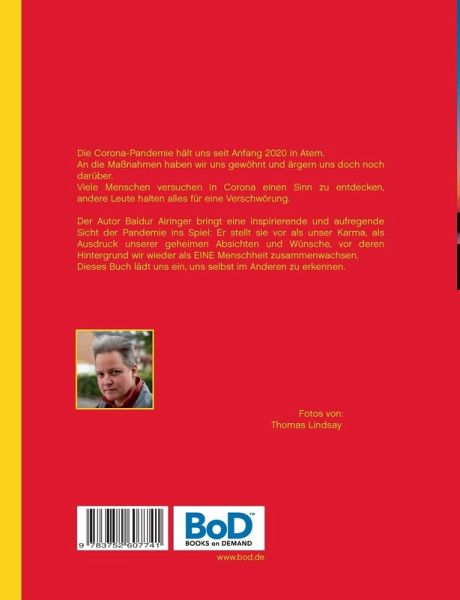 Die Corona-Pandemie hält uns seit Anfang 2020 in Atem.An die Maßnahmen haben wir uns gewöhnt und ärgern uns doch noch darüber.Viele Menschen versuchen in Corona einen Sinn zu entdecken, andere Leute halten alles für eine Verschwörung.Der Autor Baldur Airinger bringt eine inspirierende und aufregende Sicht der Pandemie ins Spiel: Er stellt sie vor als unser Karma, als Ausdruck unserer geheimen Absichten und Wünsche, vor deren Hintergrund wir wieder als EINE Menschheit zusammenwachsen.Dieses Buch lädt uns ein, uns selbst im Anderen zu erkennen.