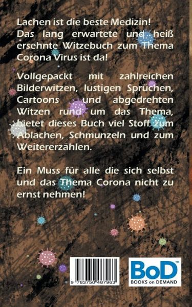 Lachen ist die beste Medizin! Das lang erwartete und heiß ersehnte Witzebuch zum Thema Corona Virus ist da! Vollgepackt mit zahlreichen Bilderwitzen, lustigen Sprüchen, Cartoons und abgedrehten Witzen rund um das Thema, bietet dieses Buch viel Stoff zum Ablachen, Schmunzeln und zum Weitererzählen. Ein Muss für alle die sich selbst und das Thema Corona nicht zu ernst nehmen!