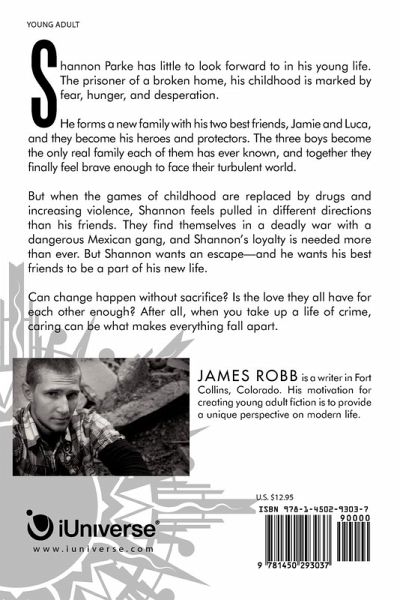 Shannon Parke has little to look forward to in his young life. The prisoner of a broken home, his childhood is marked by fear, hunger, and desperation. He forms a new family with his two best friends, Jamie and Luca, and they become his heroes and protectors. The three boys become the only real family each of them has ever known, and together they finally feel brave enough to face their turbulent world. But when the games of childhood are replaced by drugs and increasing violence, Shannon feels pulled in different directions than his friends. They find themselves in a deadly war with a dangerous Mexican gang, and Shannon's loyalty is needed more than ever. But Shannon wants an escape-and he wants his best friends to be a part of his new life. Can change happen without sacrifice? Is the love they all have for each other enough? After all, when you take up a life of crime, caring can be what makes everything fall apart.