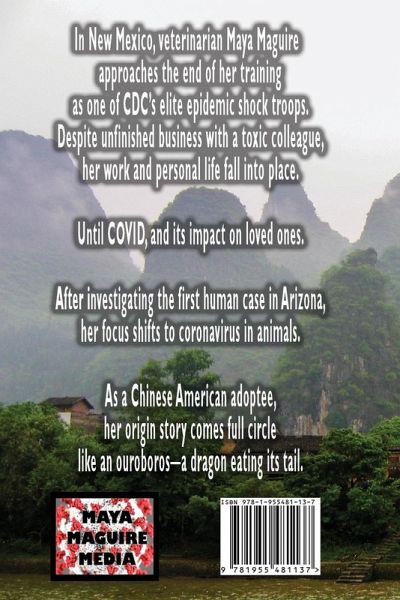 In New Mexico, veterinarian Maya Maguire approaches the end of her training as one of CDC's elite epidemic shock troops. Despite unfinished business with a toxic colleague, her work and personal life fall into place. Until COVID, and its impact on loved ones. After investigating the first human case in Arizona, her focus shifts to coronavirus in animals. As a Chinese American adoptee, her origin story comes full circle like an ouroboros-a dragon eating its tail. Interview with the Author Q: Have you always wanted to be a writer? A: A career in public health can include scientific writing and communication. But even before my training as a veterinarian, I wrote a satirical newspaper and a romance novel. In recent years, I've focused on creative writing as a way to entertain, educate, and enlighten. Q: Why do you write your MayaVerse series of microbial mysteries? A: Disease from animals-zoonoses-make up most emerging disease threats. As we've experienced in recent years, there's been one scary disease after another. Bird flu, Ebola, Zika, SARS, COVID, and monkeypox. By focusing on a young veterinary epidemiologist named Maya Maguire, readers can enjoy her worldwide travels, scientific discoveries, and relationships as she matures over several decades of her lifetime. Each new disease is a puzzle to solve caused by a microscopic criminal. Q: What is One Health? A: One Health is an important MayaVerse theme. The concept integrates the health of people, other life forms, and the environment, to maximize the benefit for all. Q: What genre of books do you enjoy? A: I'm particularly drawn to upmarket stories with complex themes and happy for now (HFN) endings. I want passionate, engaging characters dealing with difficult life issues. Some of the MayaVerse mysteries are thrillers and many are romantic suspense. With a female medical detective, all are women's fiction. Q: What authors do you read or admire? A: Having grown up in the Southwest, I worship Tony Hillerman and his daughter Anne Hillerman who's carrying on his legacy. For medical thrillers, Tess Gerritsen is my goddess, although Robin Cook and Michael Crichton have great stories with more of a sci/fi leaning than the MayaVerse, which is strongly anchored in reality. I love the romantic suspense of Nora Roberts and the intense relationships of Nicholas Sparks. In the MayaVerse, setting is a strong character, and I'm inspired by the themes and writing of Edward Abbey and John Graves. Q: What are your favorite stories? A: The first book I devoured as a child was a volume of Shakespeare's plays. I'm also a major fan of Lin-Manuel Miranda for "Hamilton" and "In the Heights." Maya Maguire is addicted to storytelling through Broadway musicals, like me. Q: Which of your interests make an appearance in your books? A: Travel throughout the U.S. and worldwide. Animals of all kinds, including pets like cats and dogs, livestock like horses and cattle, and wildlife. Music, museums, art. Family and friendships. Hiking and old movies.