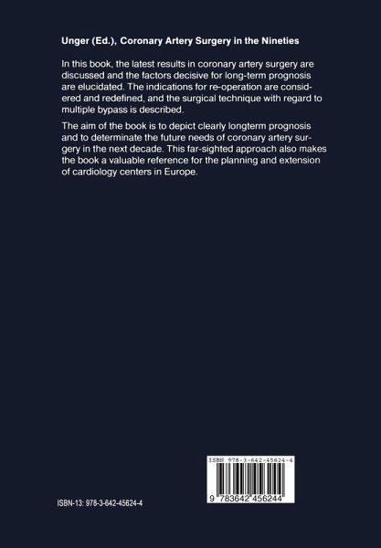 In this book, the latest results in coronary artery surgery are discussed and the factors decisive for long-term prognosis are elucidated. The indications for re-operation are considered and redefined, and the surgical technique with regard to multiple bypass is described. The aim of the book is to depict clearly long-term prognoses and to determinate the future needs of coronary artery surgery in the next decade. This far-sighted approach also makes the book a valuable reference for the planning and extension of cardiology centers in Europe. 1