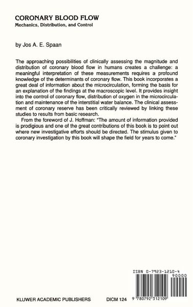 1 Basic coronary physiology.- 1.1 Introduction.- 1.1.1 Heart function and coronary flow.- 1.1.2 Control and extravascular resistance.- 1.1.3 Distribution of supply and demand.- 1.1.4 Mechanics, control and distribution in the coronary circulation.- 1.2 Coronary flow mechanics.- 1.2.1 Inhibition of coronary arterial flow during systole.- 1.2.2 Retrograde coronary arterial flow, venous flow and in-tramyocardial compliance.- 1.3 Regulation of coronary flow.- 1.3.1 Steady local control of coronary flow.- 1.3.2 How to define coronary tone?.- 1.3.3 Rate of adaptation of the coronary circulation to step changes in heart rate.- 1.3.4 Effect of perfusion pressure step.- 1.3.5 Reactive hyperemia.- 1.3.6 Mechanisms of coronary flow control.- 1.4 Heterogeneity in myocardial perfusion and oxygen supply.- 1.4.1 Distribution of flow from endocardium to epicardium.- 1.4.2 Heterogeneity induced by the arterial tree.- 1.4.3 Heterogeneity of oxygen supply/demand ratio.- 1.5 Relation between mechanics, control and distribution of coronary flow.- 1.6 Summary.- References.- 2 Structure and function of the coronary arterial tree.- 2.1 Basic anatomy.- 2.2 Collaterals.- 2.3 Structure of the coronary arterial tree.- 2.3.1 Ratios between diameters of mother and daughter branches.- 2.3.2 Growth of arterial cross-sectional area.- 2.3.3 Length distribution in the arterial tree.- 2.3.4 Arterial density applying symmetrical branching networks..- 2.4 Data on filling volume of the coronary arterial tree.- 2.5 Pressure distribution in the coronary arterial tree.- 2.6 Symmetrical, dichotomous branching network model.- 2.6.1 Definition of model structure.- 2.6.2 Prediction of volume.- 2.6.3 Prediction of pressure.- 2.7 Nonsymmetrical dichotomous branching network analysis.- 2.7.1 Strahler ordering.- 2.7.2Fractal models.- 2.8 Discussion on structure and function of the arterial tree.- 2.9 Summary.- References.- 3 Structure and perfusion of the capillary bed.- 3.1 Structure of capillary bed.- 3.2 Capillary density and volume.- 3.3 Mechanical properties.- 3.4 Red cells in the capillary bed.- 3.4.1 Velocities.- 3.4.2 Red cell distribution at bifurcations.- 3.4.3 Hematocrit.- 3.5 Model of parallel and homogeneous perfused capillary bed.- 3.6 A model for the heterogeneous perfusion of the capillary bed.- 3.7 Capillary recruitment in the heart.- 3.8 Summary.- References.- 4 Structure and function of coronary venous system.- 4.1 Basic anatomy.- 4.2 Distribution of coronary venous flow.- 4.3 Flow and pressure waves in the epicardial veins.- 4.4 Waterfall behavior of coronary epicardial veins.- 4.5 Coronary venous compliance.- 4.6 Summary.- References.- 5 Linear system analysis applied to the coronary circulation.- 5.1 Definitions.- 5.1.1 System.- 5.1.2 Linearity.- 5.1.3 Time and frequency domains.- 5.1.4 Models.- 5.1.5 Load line analysis.- 5.2 Linear intramyocardial pump model.- 5.2.1 Interpretation of the coronary load lines.- 5.2.2 Intramyocardial pump and the right coronary artery.- 5.2.3 Shortcomings of the linear intramyocardial pump model.- 5.3 Load line analysis of collateral flow.- 5.4 Input impedance.- 5.4.1 Input impedance during long diastoles.- 5.4.2 Coronary impulse response in diastole and systole.- 5.4.3 Model interpretation of coronary input impedance.- 5.5 Nonlinear physical elements and linear system analysis.- 5.6 Discussions of the linear models of coronary circulation.- 5.7 Summary.- References.- 6 Interaction between contraction and coronary flow: Theory.- 6.1 Systolic extravascular resistance model.- 6.1.1 Basic behavior of extravascular resistance model.-6.1.2 Discussion of extravascular resistance model.- 6.2 The waterfall model.- 6.2.1 Basic model behavior of the waterfall model.- 6.3 Nonlinear intramyocardial pump model.- 6.3.1 Pressure dependency of compartmental resistance.- 6.3.2 Steady state arterial pressure-flow relations during arrest.- 6.3.3 Solutions for the subendocardial model layer of the contracting myocardium.- 6.3.4 Compartmental volume variations.- 6.3.5 Flow simulations.- 6.4 Variable elastance model.- 6.4.1 Experimental support.- 6.4.2 Variable elastance concept.- 6.4.3 A mathematical intramyocardial pump model with time varying elastance as pump generator.- 6.5 Discussion.- 6.6 Summary.- References.- 7 Interaction between contraction and coronary flow: Experiment.- 7.1 Parallel shift of pressure-flow relations.- 7.2 Pressure dependency of coronary resistance.- 7.3 Effect of heart rate on microsphere distribution.- 7.4 Contractility and microsphere distribution.- 7.5 Intramyocardial compliance.- 7.6 Pulsations in coronary pressure at constant flow perfusion.- 7.7 Diastolic pressure-flow lines.- 7.8 Discussion.- 7.9 Summary.- References.- 8 Arteriolar mechanics and control of flow.- 8.1 Morphology of the arteriolar wall.- 8.2 Myogenic response.- 8.3 Arteriolar vasomotion.- 8.4 Strain and stress in the arteriolar wall.- 8.5 Myogenic responses in relation to autoregulation of flow.- 8.5.1 Relation between pressure and resistance with and without myogenic tone.- 8.5.2 Width of the autoregulatory plateau.- 8.5.3 The optimal strength of myogenic tone.- 8.6 Compliance of arterioles.- 8.6.1 Effect of tone on static compliance.- 8.6.2 Quasi-static distensibility of dilated coronary arteries.- 8.6.3 Frequency dependency of distensibility of active and passive small coronary arteries.- 8.7 Discussion.- 8.7.1Vasodilation.- 8.7.2 Arterioles and regulation of flow.- 8.8 Summary.- References.- 9 Static and dynamic analysis of local control of coronary flow.- 9.1 Introduction.- 9.2 Steady state behavior of flow control.- 9.3 Characteristics of dynamic coronary flow control.- 9.3.1 Rate of change in flow adaptation.- 9.3.2 Rate of change of autoregulation.- 9.3.3 Summary of t50 values.- 9.4 Rate of change in myocardial oxygen Consumption.- 9.4.1 Model for the correction of changing oxygen buffers.- 9.4.2 Transients in oxygen consumption.- 9.5 Oxygen model of coronary flow control.- 9.5.1 Model definition 