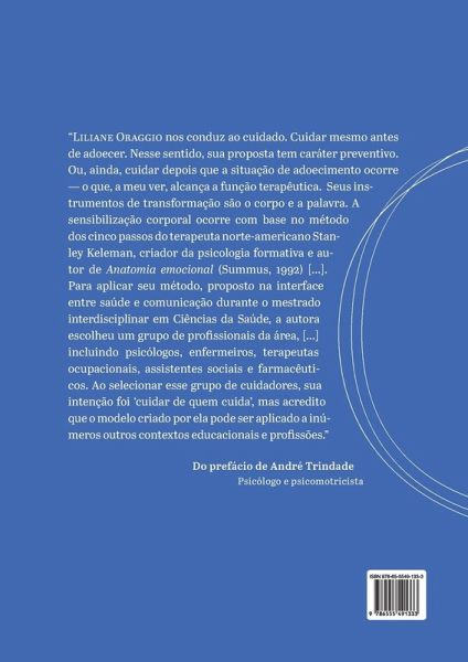 Reunindo com maestria os campos da comunicação e da saúde, este livro relata experiências vividas nas ¿Oficinas Corpo, Escuta e Escrita ¿ Experimentos Textuais Formativos¿, conduzidas por Liliane Oraggio com profissionais de saúde de diversas áreas. Baseada na psicologia formativa de Stanley Keleman, a autora mostra como realiza práticas corporais que levam os participantes das oficinas a acessar seus sentimentos e transmiti-los para o papel. Dessa forma, ao cuidar daqueles que cuidam, Liliane ajuda os profissionais a se inspirarem e melhorarem a qualidade da comunicação oral e escrita em todas as instâncias de atuação. O livro traz fotos das oficinas dirigidas por Liliane e um roteiro para que os profissionais de psicologia e saúde construam suas oficinas nos moldes das coordenadas pela autora. Obra instigante e criativa, indicada também para terapeutas corporais e profissionais de comunicação.