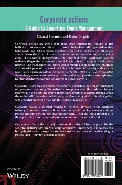 Corporate Actions is the first major work on this subject. Many people within the securities industry have heard of corporate actions - many people know they can be highly risky - many organizations have lost vast sums of cash in attempting to process them - very few understand them!