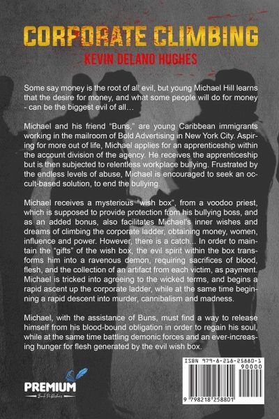 In "Corporate Climbing", the author captures identifiable snapshots of life within a dysfunctional workplace filled with many toxic "isms": racism, elitism, sexism, classism, etc. Hughes introduces a supernatural defining event and then proceeds to blend the macabre with the modern. As a horror-thriller, the story pays homage to the horror genre as well as providing its own nuances, which the author trusts readers will enjoy, remember, and appreciate based on the use of unconventional protagonists, set within interesting situations, yielding to spine-chilling and often unexpected results. Kevin's goal as a writer transcends merely providing a good old-fashioned scare, but also encompasses providing a bold, compelling, socially conscious narrative that will resonate with readers.
