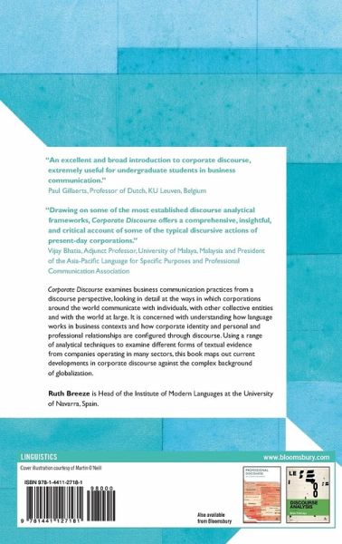 Corporate discourse examines business communication practices from a discourse perspective, looking in detail at the ways in which corporations around the world communicate with individuals, with other collective entities and with the world at large. It is concerned with understanding how language works in business contexts and how corporate identity and personal and professional relationships are configured through discourse. Using a range of analytical techniques to examine different forms of textual evidence from companies operating in many sectors, this book maps out current developments in corporate discourse against the complex background of globalization.