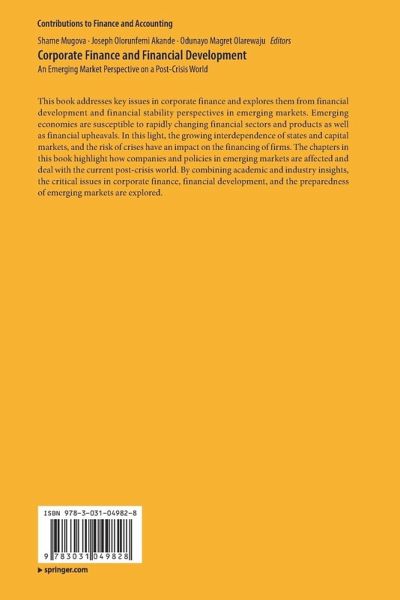 This book addresses key issues in corporate finance and explores them from financial development and financial stability perspectives in emerging markets. Emerging economies are susceptible to rapidly changing financial sectors and products as well as financial upheavals. In this light, the growing interdependence of states and capital markets, and the risk of crises have an impact on the financing of firms. The chapters in this book highlight how companies and policies in emerging markets are affected and deal with the current post-crisis world. By combining academic and industry insights, the critical issues in corporate finance, financial development, and the preparedness of emerging markets are explored.