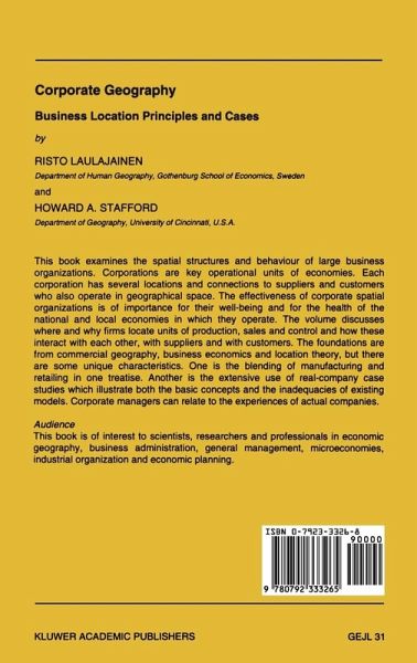 Corporate Geography examines the spatial structures and behaviour of large business organizations. Corporations are key operational units of economies. Each corporation has several locations and connections to suppliers and customers who also operate in geographical space. The effectiveness of corporate spatial organizations is of importance for their well-being and for the health of the national and local economies in which they operate. This volume discusses where and why firms locate units of production, sales and control and how these interact with each other, with suppliers and with customers. The foundations are from commercial geography, business economics and location theory, but there are some unique characteristics. One is the blending of manufacturing and retailing in one treatise. Another is the extensive use of real-company case studies which illustrate both the basic concepts and the inadequacies of existing models. Corporate managers can relate tothe experiences of actual companies.