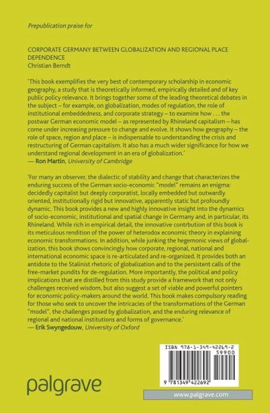 List of Tables List of Figures List of Maps Preface List of Abbreviations Putting Business Restructuring in Context: Globalization, the Crisis of the German Model and Rhineland Capitalism Situating Business Strategies: Institutions, Regulation and Geography Scaling Business Strategies: Globalization, Place Dependence and Institutional Distance Globalization, 'Americanization' and the Changing Corporate Power Geometry The Territorialization of Ruhr Conglomerates: Regional Engagement and Place Dependence The Ruhr Mittelstand: The Institutional Limits to Restructuring In-Space The Regional Responses by Mittelstand Firms: Falling Back on 'Tested and Tried Relations', Transmission of Pressure and Systemic Change Making the (Re)connections: Governance Dilemmas, Discursive Regulation and the Scaling of Organizational Space Appendices Notes Bibliography Glossary Index
