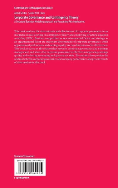 This book analyzes the determinants and effectiveness of corporate governance in an integrated model drawing on contingency theory and employing structural equation modeling (SEM). Business competition as an environmental factor and strategy as an organizational factor are important determinants of corporate governance, while organizational performance and earnings quality are two dimensions of its effectiveness. This book focuses on the relationship between corporate governance and earnings management, and shows that corporate governance is effective in improving earnings quality and reducing accounting and governance risks. The authors also question the relation between corporate governance and company performance and present results of their analysis in this book.