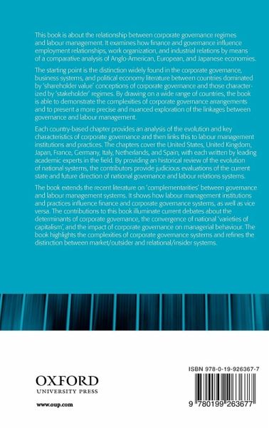 By providing a historical review of the evolution of national systems, the contributors provide judicious evaluations of the current state and future direction of national governance and labour relations systems. Overall, the book goes beyond the 'complementarities' between governance and labour management systems identified in recent literature, and attempts to identify causal relationships between the two. It shows how labour management institutions and practices may influence finance and corporate governance systems, as well as vice versa The contributions to this book illuminate current debates about the determinants of corporate governance, the convergence of national 'varieties of capitalism', and the impact of corporate governance on managerial behaviour. The book highlights the complexities of corporate governance systems and refines the distinction between market/outsider and relational/insider systems.
