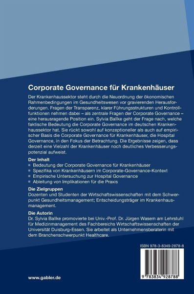 Der Krankenhaussektor steht durch die Neuordnung der ökonomischen Rahmenbedingungen im Gesundheitswesen vor gravierenden Herausforderungen. Fragen der Transparenz, klarer Führungsstrukturen und Kontrollfunktionen nehmen dabei - als zentrale Fragen der Corporate Governance - eine herausragende Position ein. Sylvia Ballke geht der Frage nach, welche faktische Bedeutung die Corporate Governance im deutschen Krankenhaussektor hat. Sie rückt sowohl auf konzeptioneller als auch auf empirischer Basis die Corporate Governance für Krankenhäuser, die Hospital Governance, in den Fokus der Betrachtung. Die Ergebnisse zeigen, dass derzeit eine Vielzahl der Krankenhäuser noch deutliches Verbesserungspotenzial aufweist.