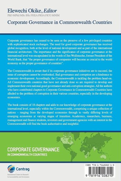 This book is a compendium of contributions from accomplished authors, which examines how Commonwealth member states have achieved a degree of consensus in developing and promoting standards of corporate governance both in the public and the private sectors and how they are tackling the problem of corruption.