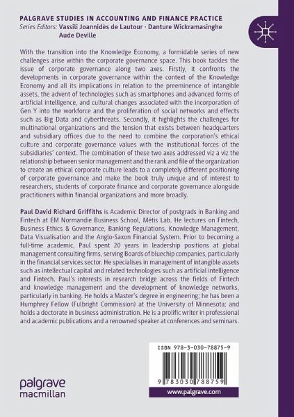 With the transition into the Knowledge Economy, a formidable series of new challenges arise within the corporate governance space. This book tackles the issue of corporate governance along two axes. Firstly, it confronts the developments in corporate governance within the context of the Knowledge Economy and all its implications in relation to the pre-eminence of intangible assets, the advent of technologies such as smartphones and advanced forms of artificial intelligence, and cultural changes associated with the incorporation of Gen Y into the workforce and the proliferation of social networks and effects such as Big Data and cyber-threats. Secondly, it highlights the challenges for multinational organizations and the tension that exists between headquarters and subsidiary offices due to the need to combine the corporation's ethical culture and corporate governance values with the institutional forces of the subsidiaries' context. The combination of these two axes addressedviz aviz the relationship between senior management and the rank and file of the organization to create an ethical corporate culture leads to a completely different positioning of corporate governance and make the book truly unique and of interest to researchers, students of corporate finance and corporate governance alongside practitioners within financial organizations and more broadly.