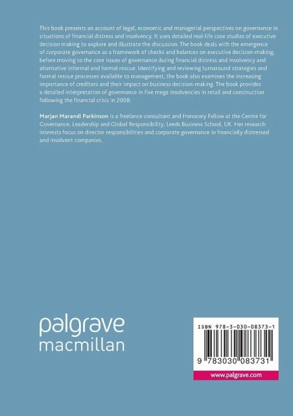 This book presents an account of legal, economic and managerial perspectives on governance in situations of financial distress and insolvency. It uses detailed real-life case studies of executive decision making to explore and illustrate the discussion. The book deals with the emergence of corporate governance as a framework of checks and balances on executive decision-making, before moving to the core issues of governance during financial distress and insolvency and alternative informal and formal rescue. Identifying and reviewing turnaround strategies and formal rescue processes available to management, the book also examines the increasing importance of creditors and their impact on business decision-making. The book provides a detailed interpretation of governance in five mega insolvencies in retail and construction following the financial crisis in 2008. It also sets out a methodology which is designed to inform and help those readers seeking to analyse and interpretdirector behaviour in such circumstances.