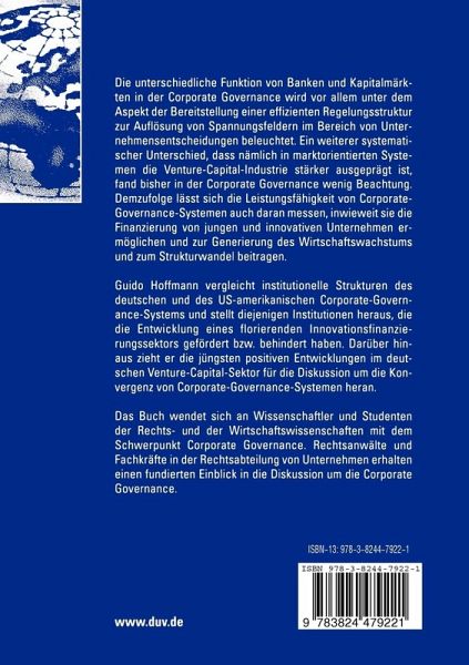 Guido Hoffmann vergleicht institutionelle Strukturen des deutschen und des US-amerikanischen Corporate-Governance-Systems und stellt diejenigen Institutionen heraus, die die Entwicklung eines florierenden Innovationsfinanzierungssektors gefördert bzw. behindert haben. Darüber hinaus zieht er die jüngsten positiven Entwicklungen im deutschen Venture-Capital-Sektor für die Diskussion um die Konvergenz von Corporate-Governance-Systemen heran.