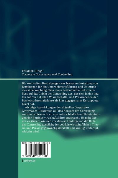 Bedeutung des Controlling im Rahmen der Reformbestrebungen zur Verbesserung der Corporate Governance.- Theoretische Einbettung des Controlling in die Methodologie der Unternehmensüberwachung und -steuerung.- Zum Verhältnis von Controlling, Interner Revision und Früherkennung vor dem Hintergrund der Corporate Governance.- Management Support Systeme als Komponenten der Corporate Governance.- Controlling als Bindeglied zwischen Vorstand und Aufsichtsrat.- Überwachung des Risikomanagementsystems durch den Aufsichtsrat.- Rolle des Internets als Instrument der Unternehmenskommunikation - Ergebnisse einer empirischen Untersuchung.- Zum Einfluss der internationalen Rechnungslegung auf das Controlling.- IT-gestützte Rechnungslegungspolitik auf internationaler Basis.- Zum Aufbau und Einsatz eines produktionswirtschaftlichen Value-Reporting-Systems.- Controlling als Objekt der handelsrechtlichen Abschlussprüfung.- Controlling von Wirtschaftsprüferpraxen als Gegenstand der externen Qualitätskontrolle.