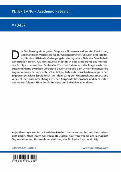 Die Etablierung einer guten Corporate Governance dient der Einrichtung und ständigen Verbesserung der Unternehmensstrukturen und -prozesse, die eine effiziente Verfolgung der strategischen Ziele der Gesellschaft sicherstellen sollen. Als Konsequenz ist letztlich eine Steigerung des monetären Erfolgs zu erwarten. Zahlreiche Forscher haben sich der Frage nach dem Zusammenhang zwischen Corporate Governance und dem Unternehmenserfolg angenommen - mit sehr unterschiedlichen, teils widersprüchlichen empirischen Ergebnissen. Diese Studie bricht mit dem gängigen Untersuchungsansatz und versucht, den Zusammenhang zwischen Corporate Governance und dem Unternehmenserfolg mit Hilfe der Einführung von Subzielen zu erklären.