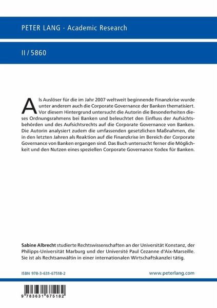 Als Auslöser für die im Jahr 2007 weltweit beginnende Finanzkrise wurde unter anderem auch die Corporate Governance der Banken thematisiert. Vor diesem Hintergrund untersucht die Autorin die Besonderheiten dieses Ordnungsrahmens bei Banken und beleuchtet den Einfluss der Aufsichtsbehörden und des Aufsichtsrechts auf die Corporate Governance von Banken. Die Autorin analysiert zudem die umfassenden gesetzlichen Maßnahmen, die in den letzten Jahren als Reaktion auf die Finanzkrise im Bereich der Corporate Governance von Banken ergangen sind. Das Buch untersucht ferner die Möglichkeit und den Nutzen eines speziellen Corporate Governance Kodex für Banken.