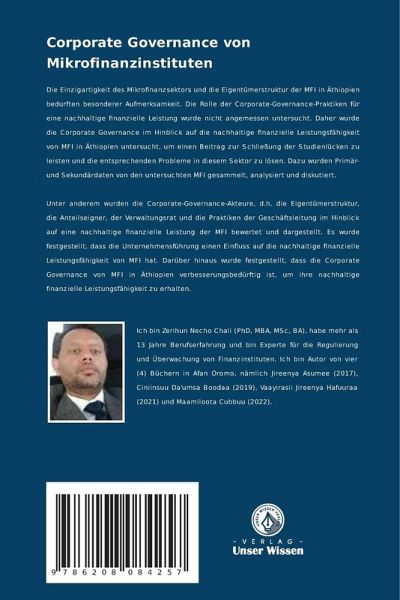 Die Einzigartigkeit des Mikrofinanzsektors und die Eigentümerstruktur der MFI in Äthiopien bedurften besonderer Aufmerksamkeit. Die Rolle der Corporate-Governance-Praktiken für eine nachhaltige finanzielle Leistung wurde nicht angemessen untersucht. Daher wurde die Corporate Governance im Hinblick auf die nachhaltige finanzielle Leistungsfähigkeit von MFI in Äthiopien untersucht, um einen Beitrag zur Schließung der Studienlücken zu leisten und die entsprechenden Probleme in diesem Sektor zu lösen. Dazu wurden Primär- und Sekundärdaten von den untersuchten MFI gesammelt, analysiert und diskutiert. Unter anderem wurden die Corporate-Governance-Akteure, d.h. die Eigentümerstruktur, die Anteilseigner, der Verwaltungsrat und die Praktiken der Geschäftsleitung im Hinblick auf eine nachhaltige finanzielle Leistung der MFI bewertet und dargestellt. Es wurde festgestellt, dass die Unternehmensführung einen Einfluss auf die nachhaltige finanzielle Leistungsfähigkeit von MFI hat. Darüber hinaus wurde festgestellt, dass die Corporate Governance von MFI in Äthiopien verbesserungsbedürftig ist, um ihre nachhaltige finanzielle Leistungsfähigkeit zu erhalten.