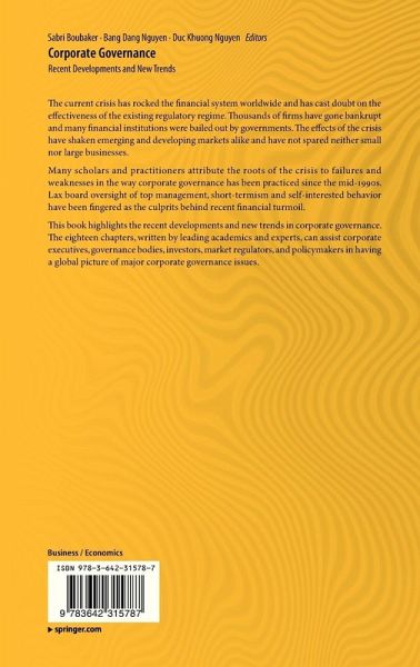 This book highlights the recent developments and new trends in corporate governance. The eighteen chapters, written by leading academics and experts, can assist corporate executives, governance bodies, investors, market regulators, and policymakers in having a global picture of major corporate governance issues.