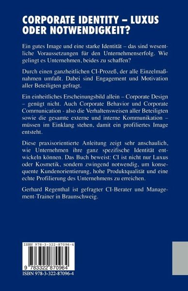 Gerhard Regenthal, 1947 geboren, studierte Sozial- und Wirtschaftswissenschaften. Er ist sozialwissenschaftlicher Unternehmensberater, Corporate-Identity-Berater und Trainer. Außerdem ist er Lehrbeauftragter an der Hochschule für Bildende Künste in Braunschweig im Fachbereich Design.