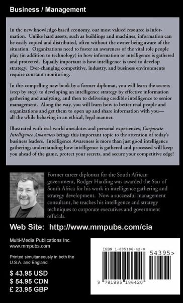 In the new knowledge-based economy, our most valued resource is information. Unlike hard assets, such as buildings and machines, information can be easily copied and distributed, often without the owner being aware of the situation. Organizations need to foster an awareness of the vital role people play (in addition to technology) in how information or intelligence is gathered and protected. Equally important is how intelligence is used to develop strategy. Ever-changing competitive, industry, and business environments require constant monitoring. In this compelling new book by a former diplomat, you will learn the secrets (step by step) to developing an intelligence strategy by effective information gathering and analyzing, and then to delivering credible intelligence to senior management. Along the way, you will learn how to better read people and organizations and get them to open up and share information with you- all the while behaving in an ethical, legal manner. Illustrated with real-world anecdotes and personal experiences, Corporate Intelligence Awareness brings this important topic to the attention of today's business leaders. Intelligence Awareness is more than just good intelligence gathering; understanding how intelligence is gathered and processed will keep you ahead of the game, protect your secrets, and secure your competitive edge!